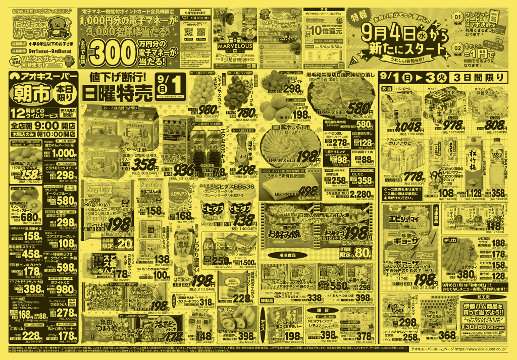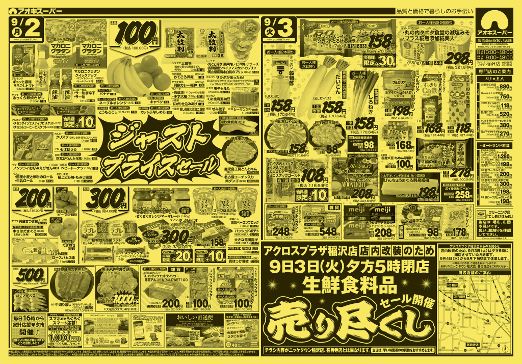 アオキスーパー アクロスプラザ稲沢店の『最新のチラシ』2024年9月1日(日)~3日(火)を紹介いたします。