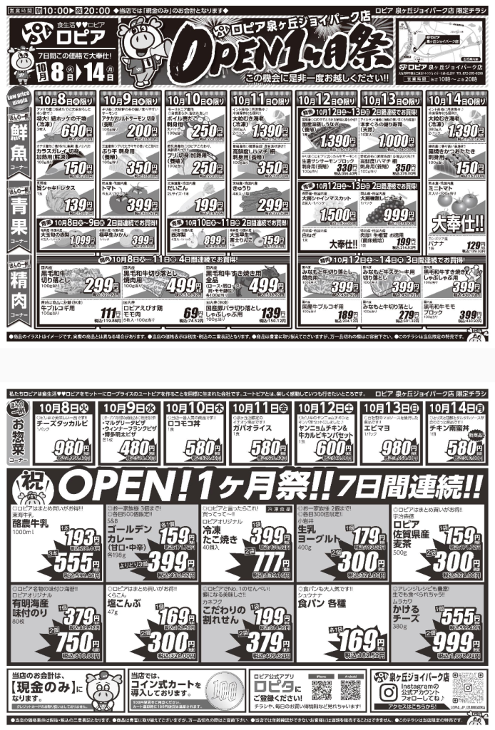ロピア 泉ヶ丘ジョイパーク店の『最新のチラシ』2024年10月8日(火)~10月14日(月)を紹介いたします。