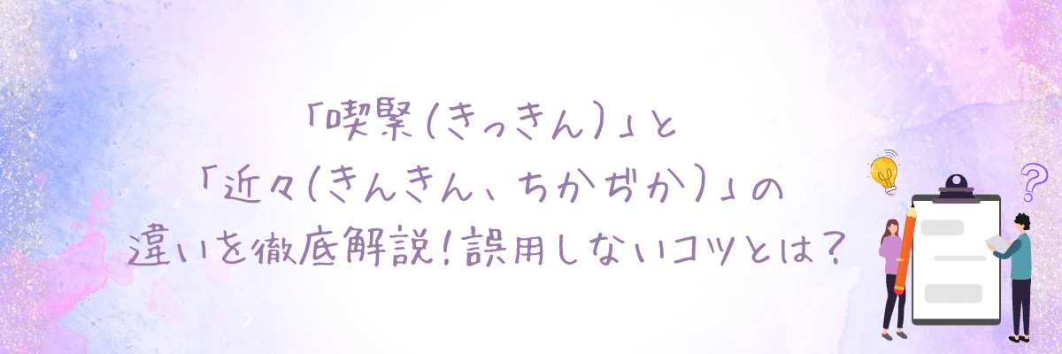 この記事を読むことで、「喫緊」と「近々」の使い分けをマスターし、誤用せずに自然なコミュニケーションができるようになります。