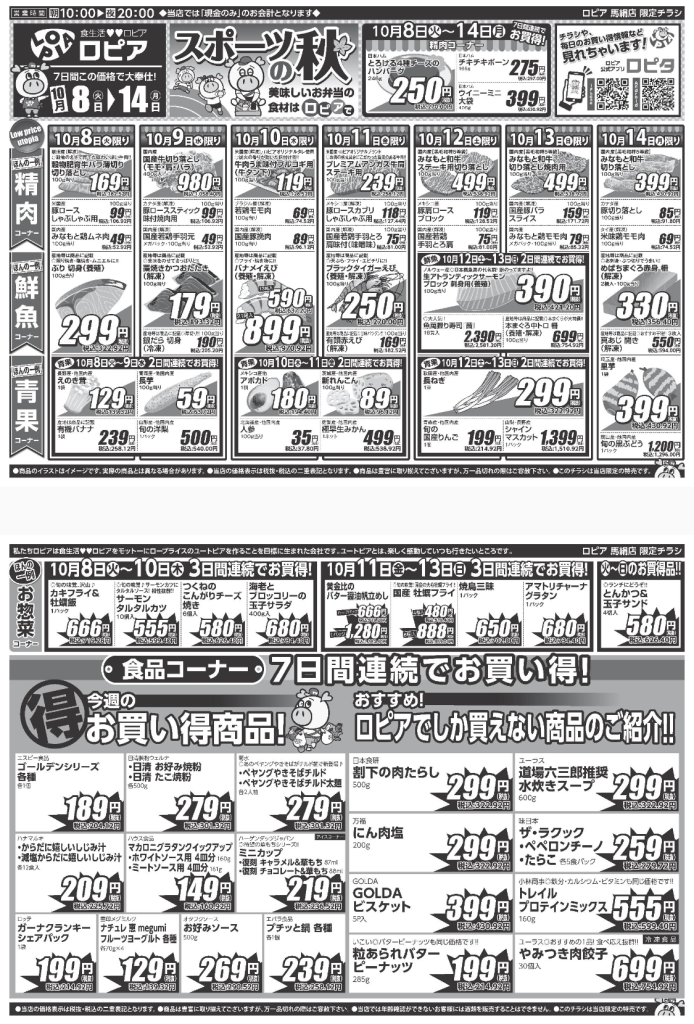 ロピア 馬絹店の『最新のチラシ』2024年10月8日(火)~10月14日(月)を紹介いたします。