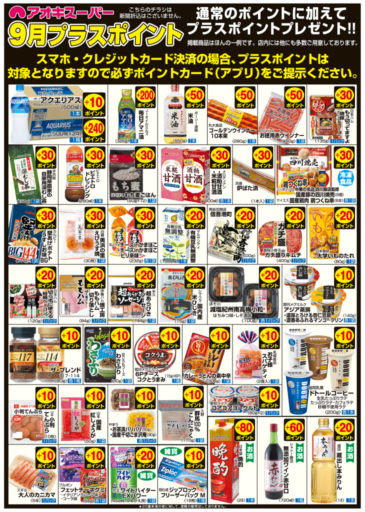 アオキスーパー 長久手店の『最新のチラシ』2024年9月1日(日)~3日(火)を紹介いたします。