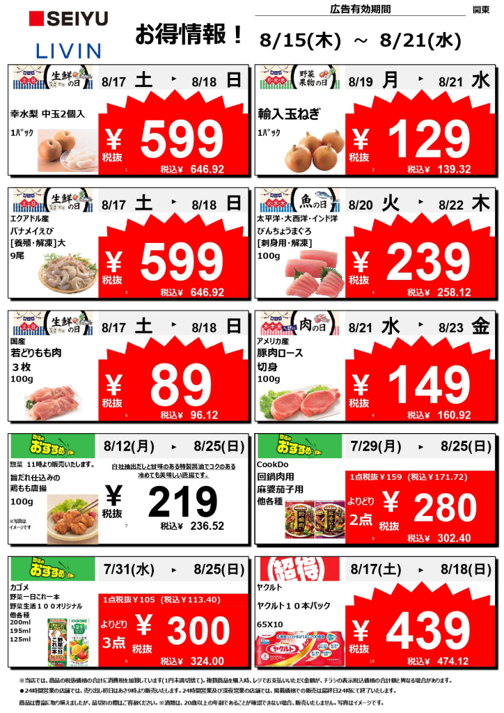 西友足立島根店の最新チラシ【2024年8月15日(木)~21日(水)】